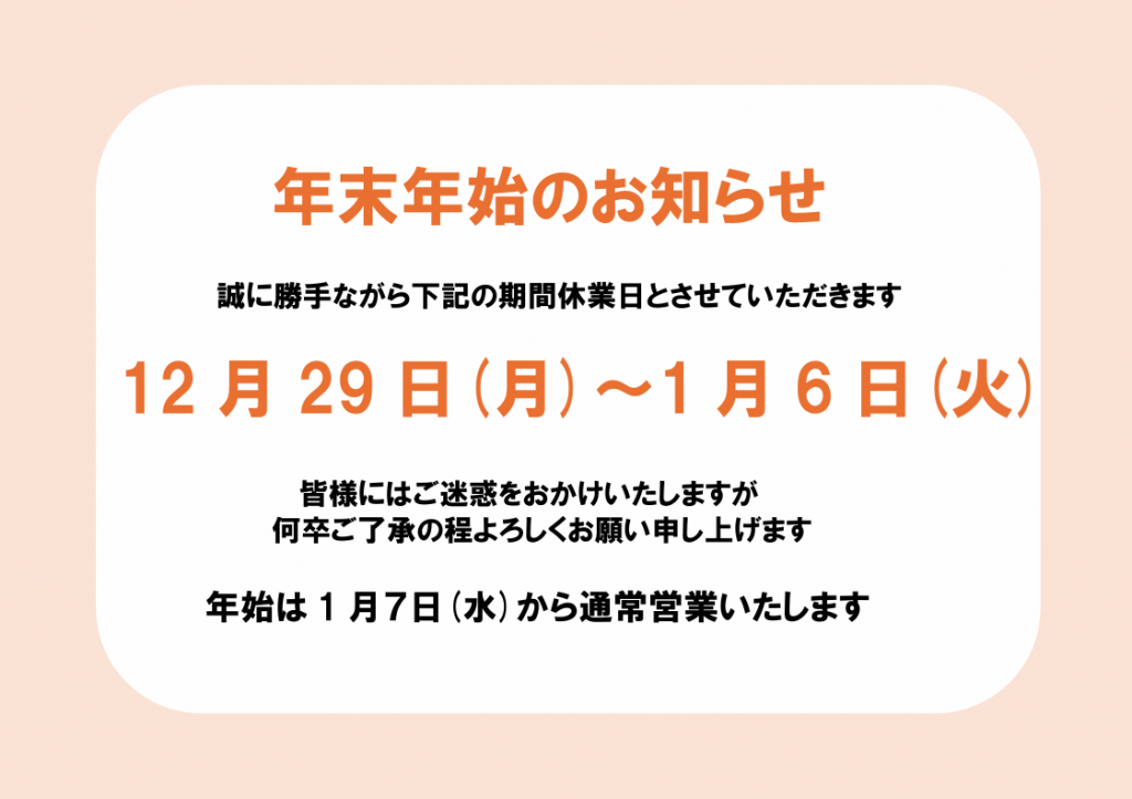 ※お問い合わせにつきましては、2026年1月7日(水)以降ご連絡させて頂きます。