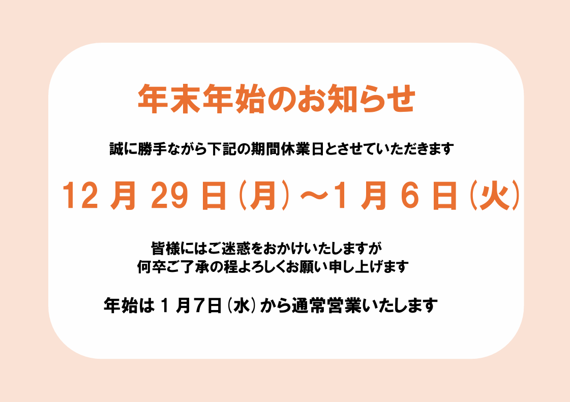 ※お問い合わせにつきましては、2026年1月7日(水)以降ご連絡させて頂きます。