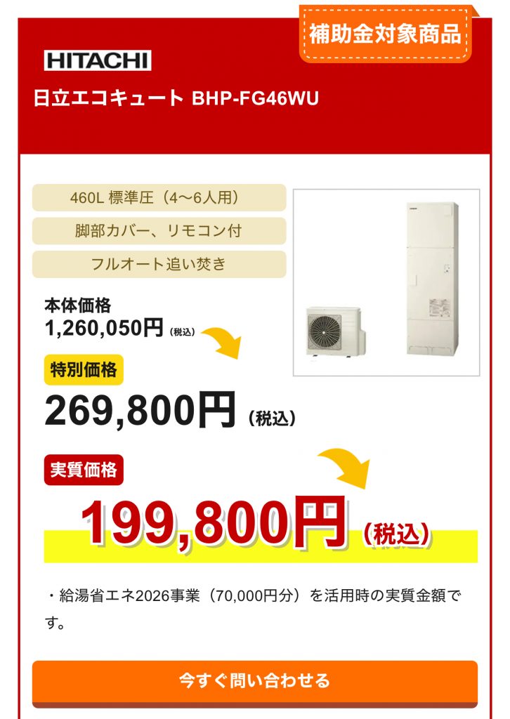 - 電気温水器からの交換: 上記に加え、撤去費用として4万円が加算され、最大17万円の補助が可能です。